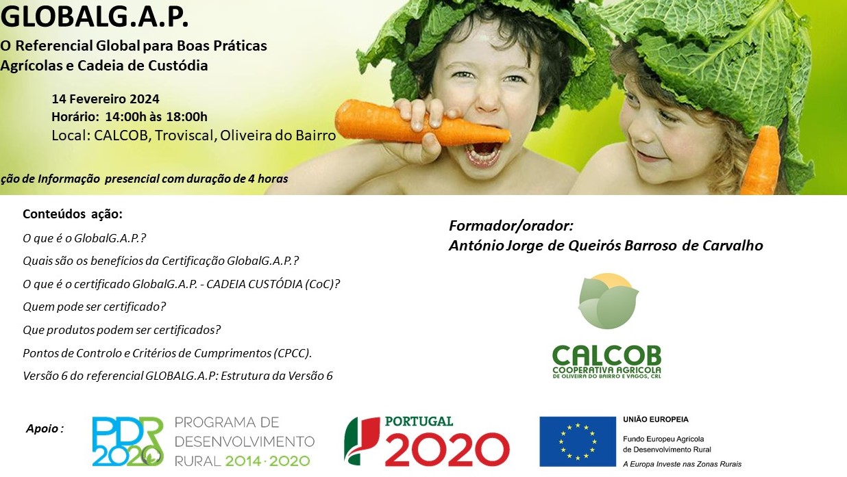 Irá decorrer, no próximo dia 14 de fevereiro, uma ação de informação sobre o GlobalG.A.P., o Referencial Global para Boas Práticas Agrícolas e Cadeia de Custódia.