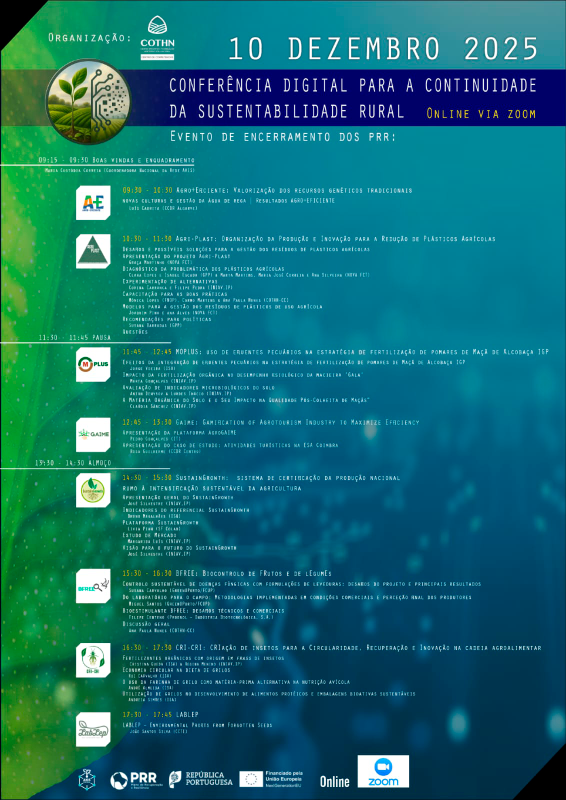 Será uma conferência online de dia inteiro com a disponibilização de cerca de 1 hora por projeto, para apresentação de resultados e encerramento dos mesmos.