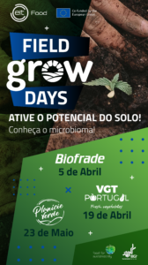 O Food4Sustainability, a BGI e o programa Grow, do EIT Food, lançam os Grow Field Days nos dias 5 e 19 de abril e 23 de maio. Três manhãs, com três visitas de campo, onde serão abordadas temáticas relacionadas com a saúde do solo e das plantas.