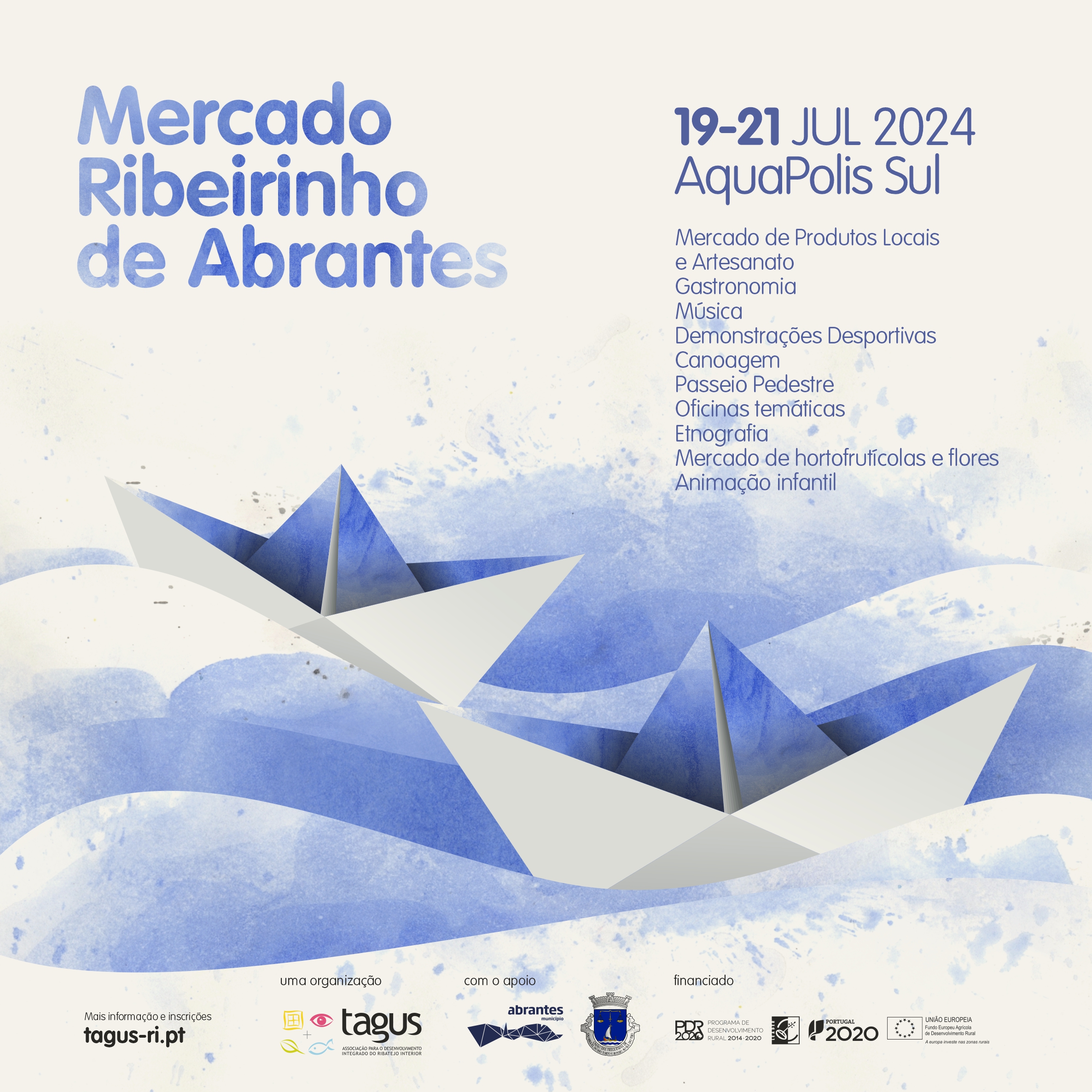 A TAGUS – Associação para o Desenvolvimento Integrado do Ribatejo Interior vai dinamizar o Mercado Ribeirinho de Abrantes, nos dias 19 a 21 de julho, no Aquapolis – Margem Sul. Este evento vai incluir diversas atividades culturais e desportivas, em que o artesanato e os produtos estarão em destaque, convidando os visitantes a usufruir de bons momentos de convívio junto ao Tejo.