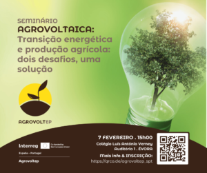 A Universidade de Évora, em associação com a CIMAC, Make it Better, Fundação MUSOL, município de Arroyo de la Luz e Associação Objetivos, está a organizar um seminário sobre Agrovoltaico no dia 7 de fevereiro, às 15h, no Colégio Luís António Verney, em Évora.