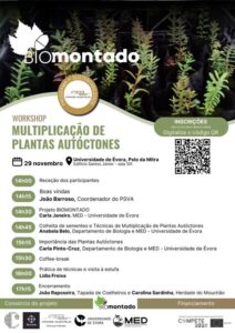 O Projeto “BIOMONTADO – O Ecossistema do Montado e da Vinha” promove mais um workshop, dia 29 novembro no Pólo da Mitra, Universidade de Évora. Desta vez sobre Multiplicação de Espécies Autóctones com o objetivo de disseminar conhecimento sobre técnicas de multiplicação de espécies autóctones, que favorecem a sua propagação contribuindo assim para a conservação da biodiversidade