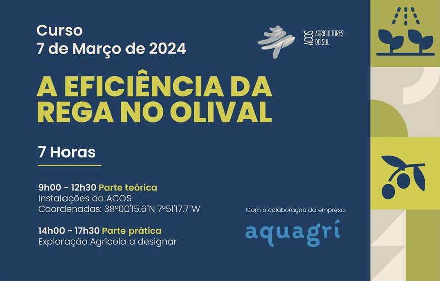 Formação não Financiada - Curso de A Eficiência da Rega no Olival. Conheça o programa: Programa: Das 09h00 às 12h30 - Componente teórica nas instalações…